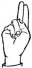 На ћирилици написано МАГДАЛЕНА КЛИНЦОВ састоји се из 16 слова [?]. Исписано ћириличном једноручном азбуком за глувонеме: